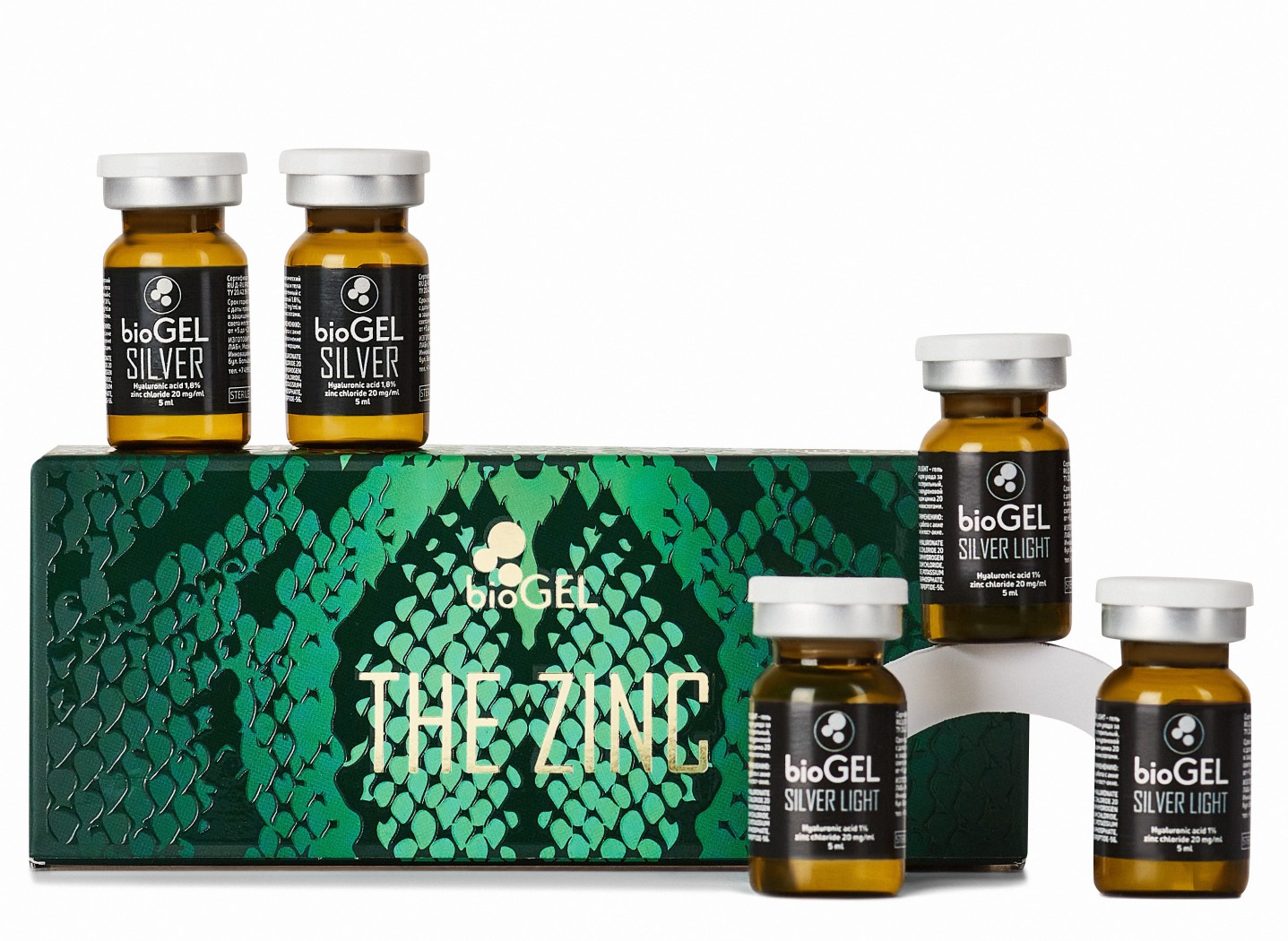 Набор из 2 препаратов: 2 флакона Biogel Silver + 3 флакона Biogel Silver light. Silver light 5 мл Себорегуляция; Сужение пор; Противовоспалительный эффект; Выравнивание тона; Уплотнение кожи. Silver 5мл Работа с заломами и рубцами постакне; Векторный лифтинг канюлей; Омоложение носогубного треугольника.