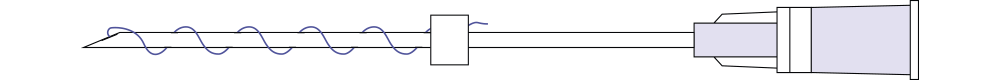 Острая игла. Моно нить, скрученная в спираль.